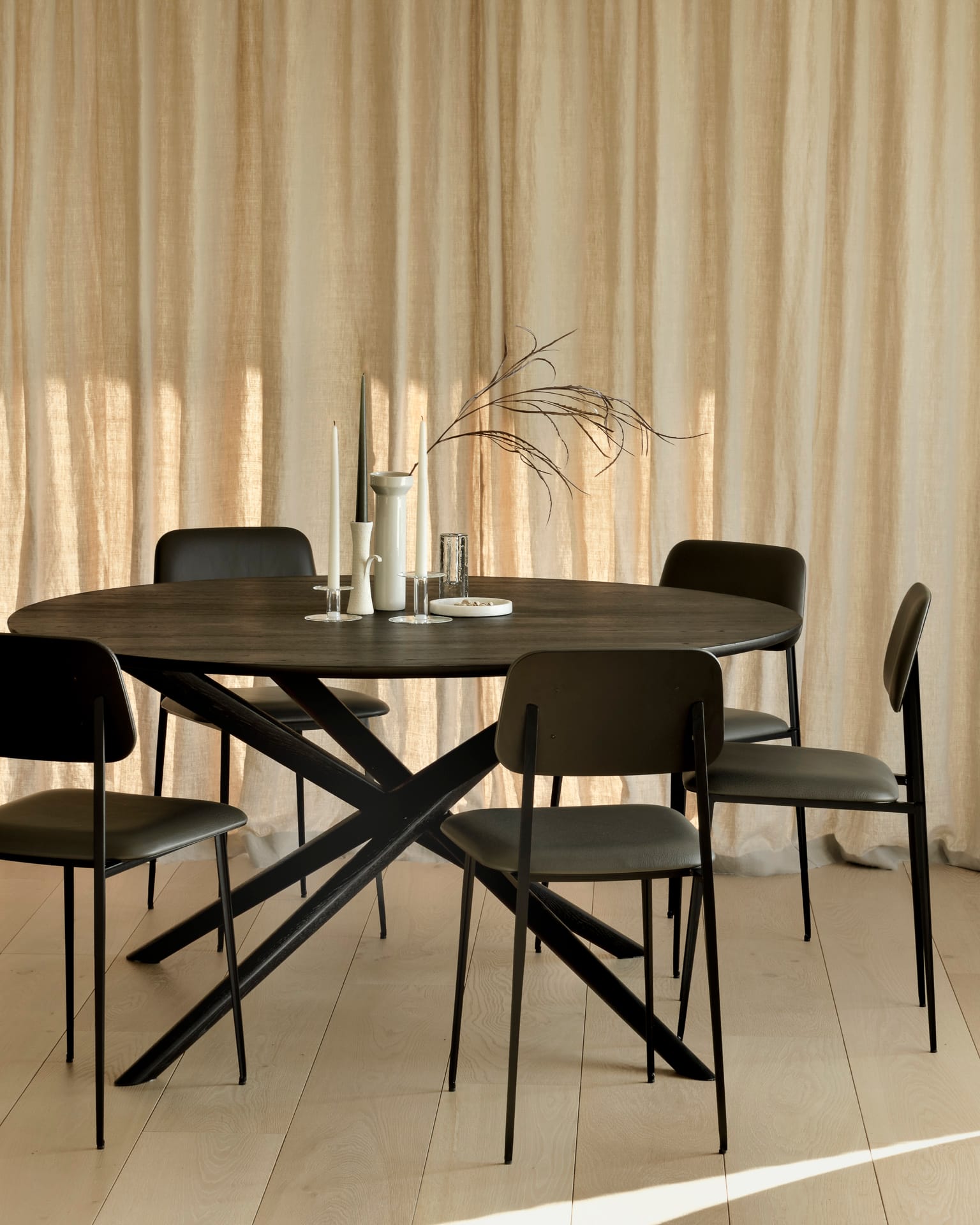 Pagaminta iš juodai dažyto šlifuoto ąžuolo su lakuota apdaila.